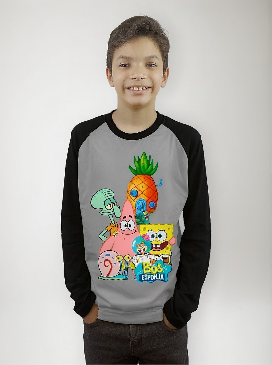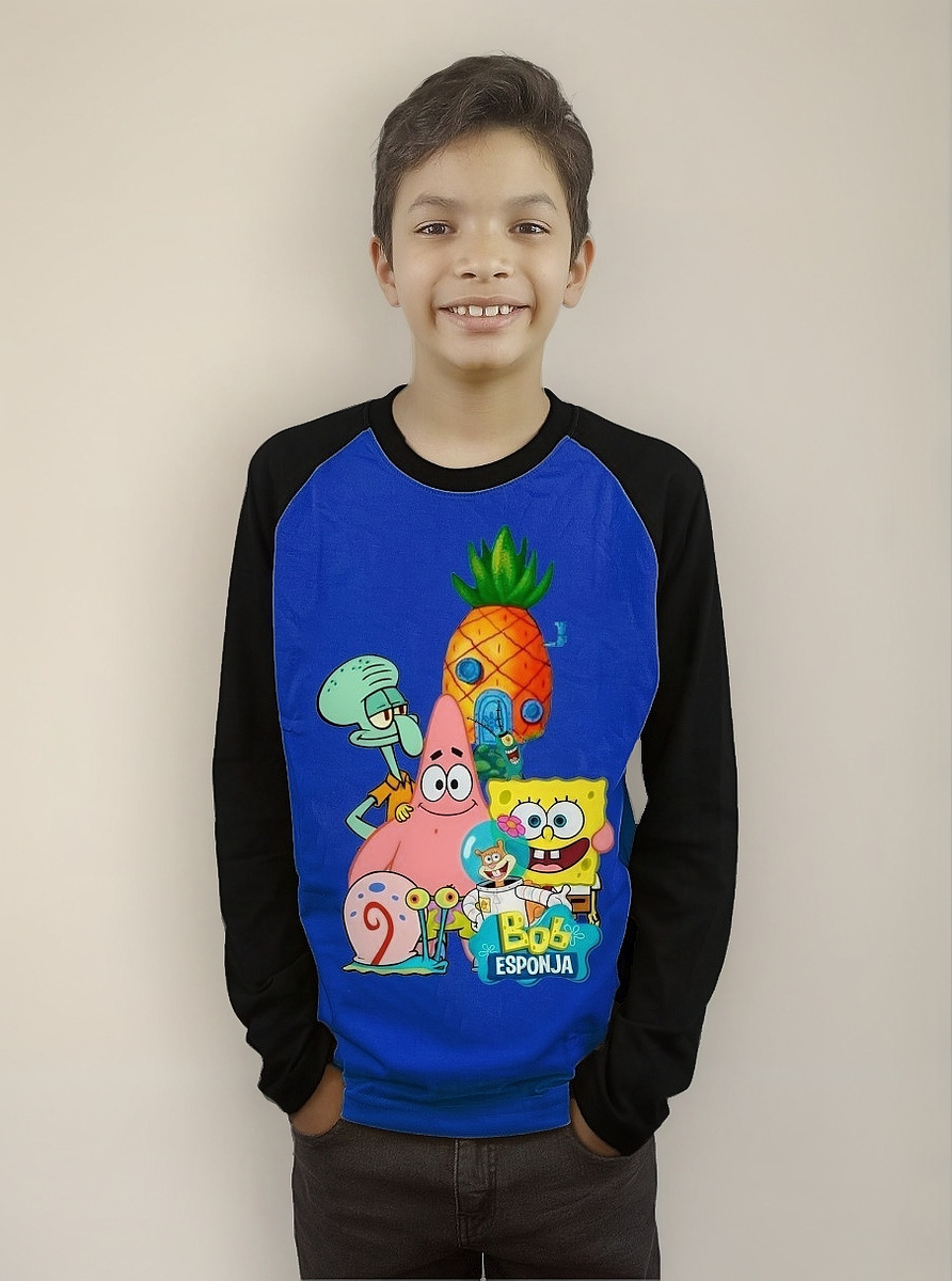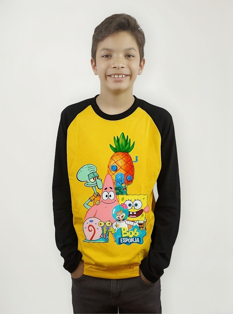 Polera Bob Esponja Para Niños Manga Larga Dtf Cod 001