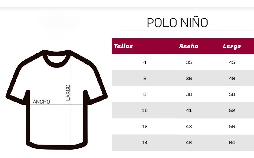 | Talla | Ancho | Largo |
