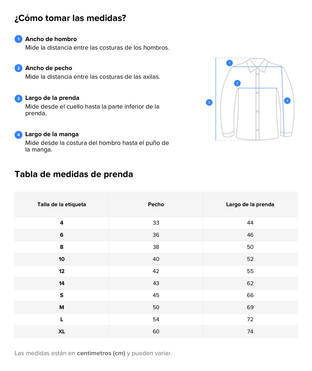 centímetros de cada talla en nuestra Guía de Tallas).