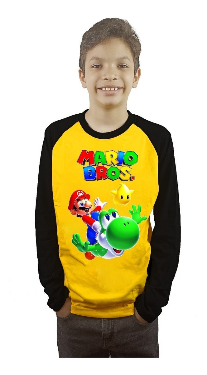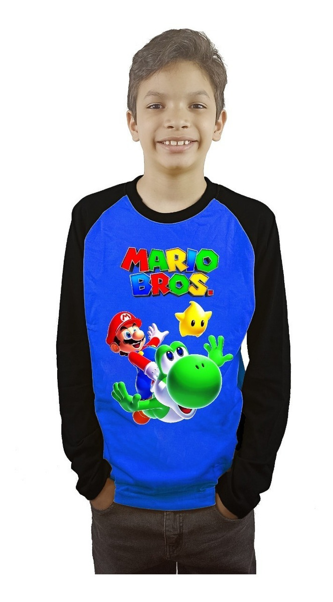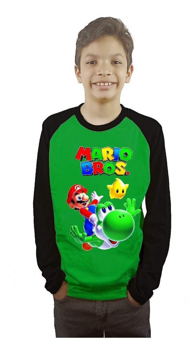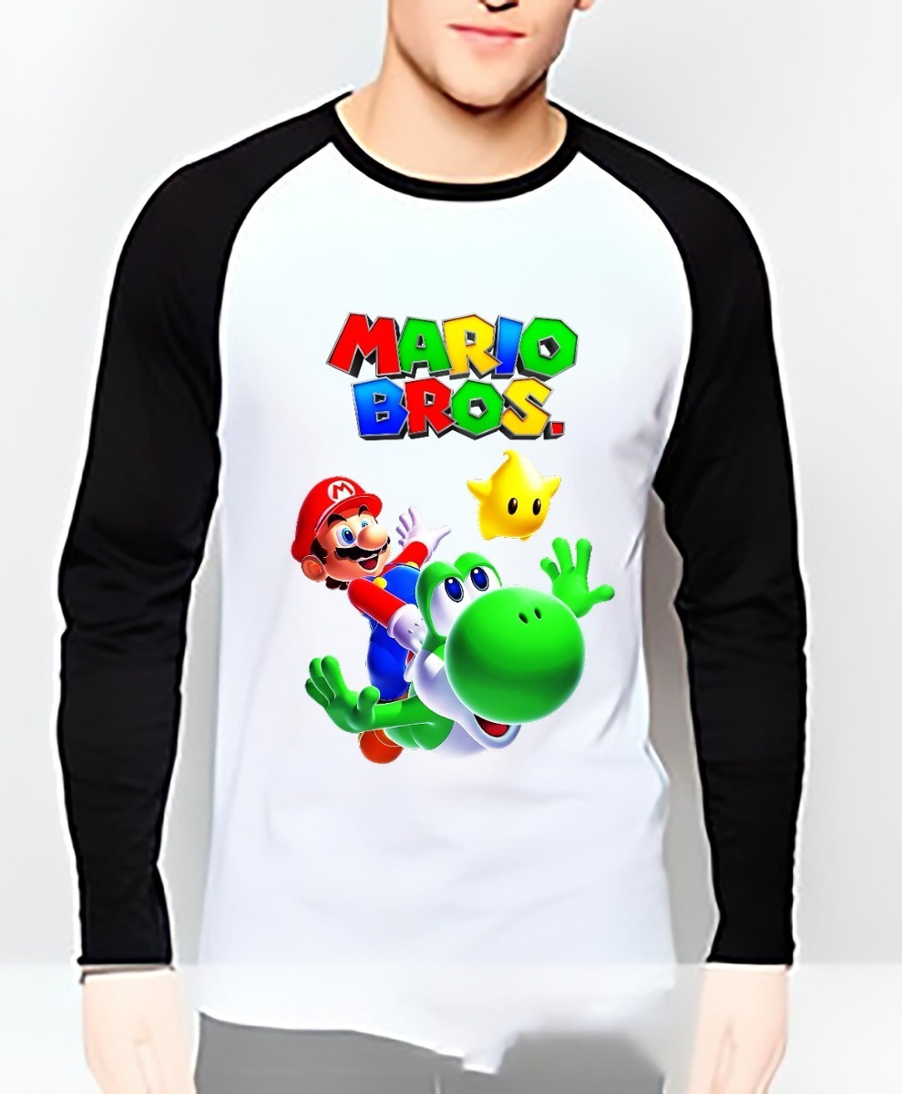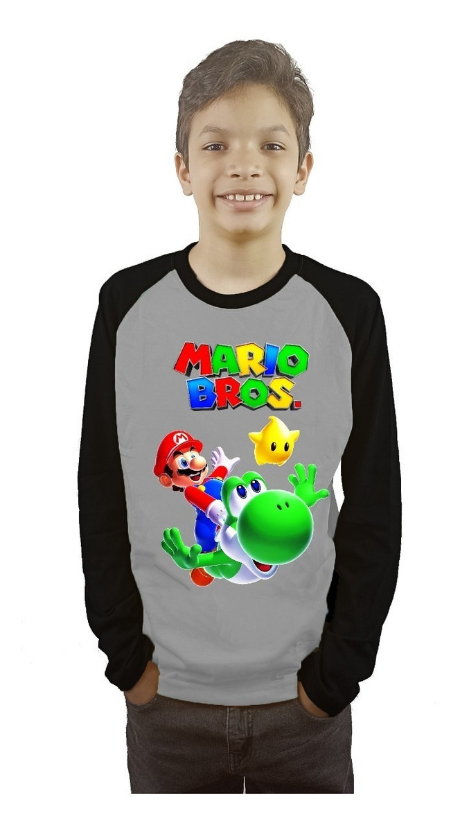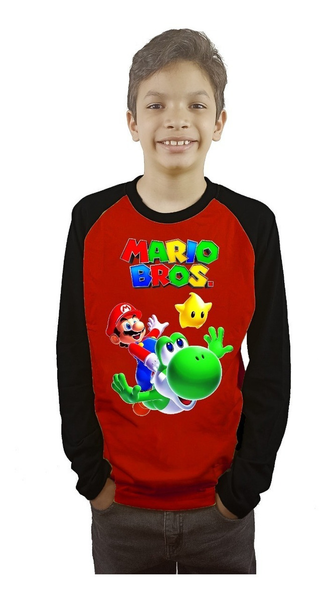 Polera Mario Bros Niños Manga Larga Estampada Dtf Cod 004