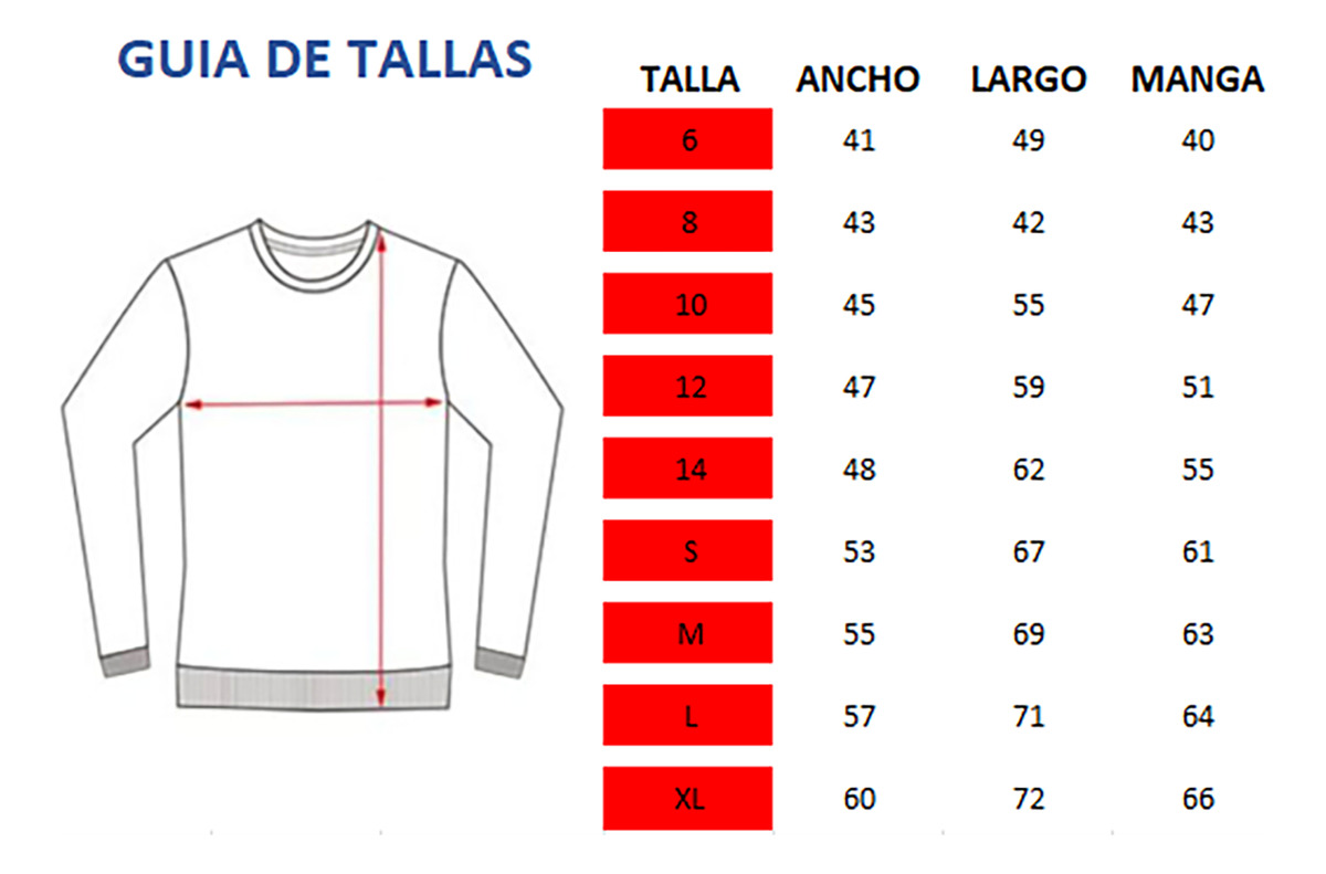 | Talla | Ancho | Largo | Manga |