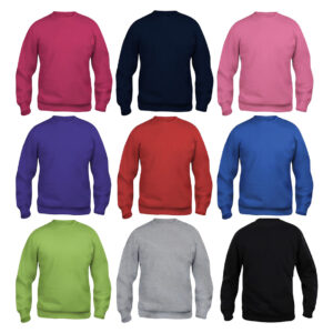 Polerones Cuello Redondo. Composición: 100% franela algodón grueso, punto liso, estampado poliuretano (PU) de alta resistencia.